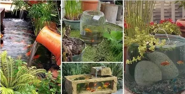 陶罐流水,青苔滿地,綠植點綴,魚兒歡鬧,狹小空間,也能造出一個迷你水族館。